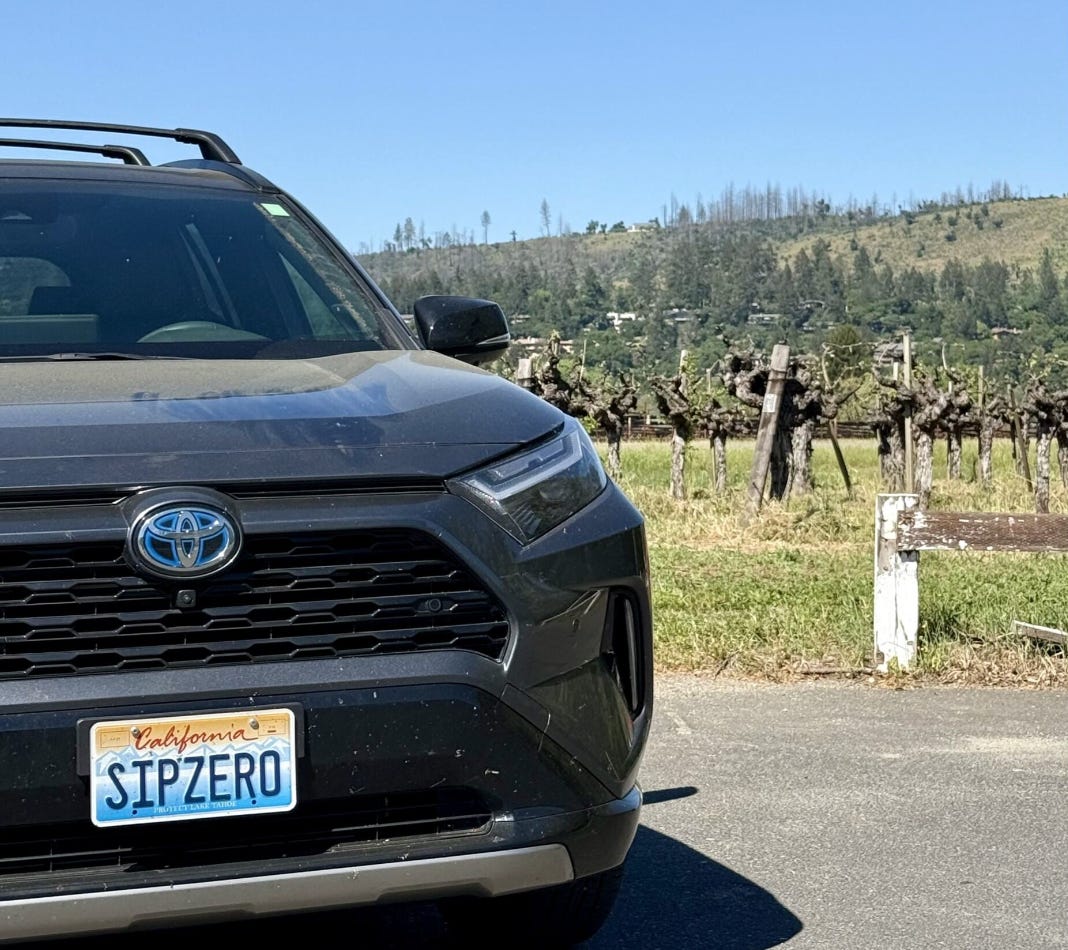 I spend a lot of my time driving around Napa and Lodi, visiting our production teams, fulfillment partners, and calling on retailers and restaurants to spread the word about our non-alcoholic wines. Of course, gotta plug the category wherever my office on wheels takes me, so I added SIPZERO plates on my car (forgive the vineyard dust).